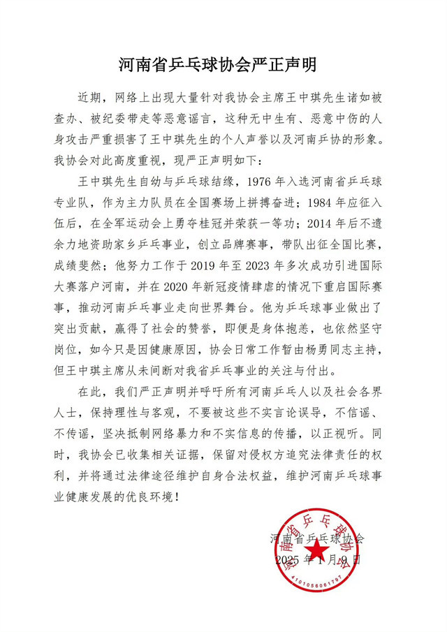 不过,河南乒协回应了外界传闻,称老王并非被带走,“因王中琪健康原因,协会日常工作暂由杨勇同志主持。”接下来的事情发展,就要等待时间去揭晓了。